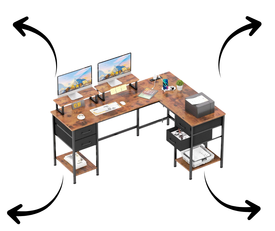 NeoDeskPro™ 59" L-Shaped Computer Desk with Power Outlets & Drawers